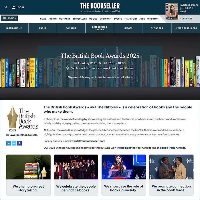 Mat further referred to how effortless he found the build and rollout - as he did much of that work himself - and how substantial the cost savings were that The Bookseller Team could carry out all the work themselves - while with a different platform there would almost inevitably be additional setup charges. With Affino they could roll out the new Nibbies Award Site themselves, and can henceforth build up additional full-featured Event Sites without encountering further costs.