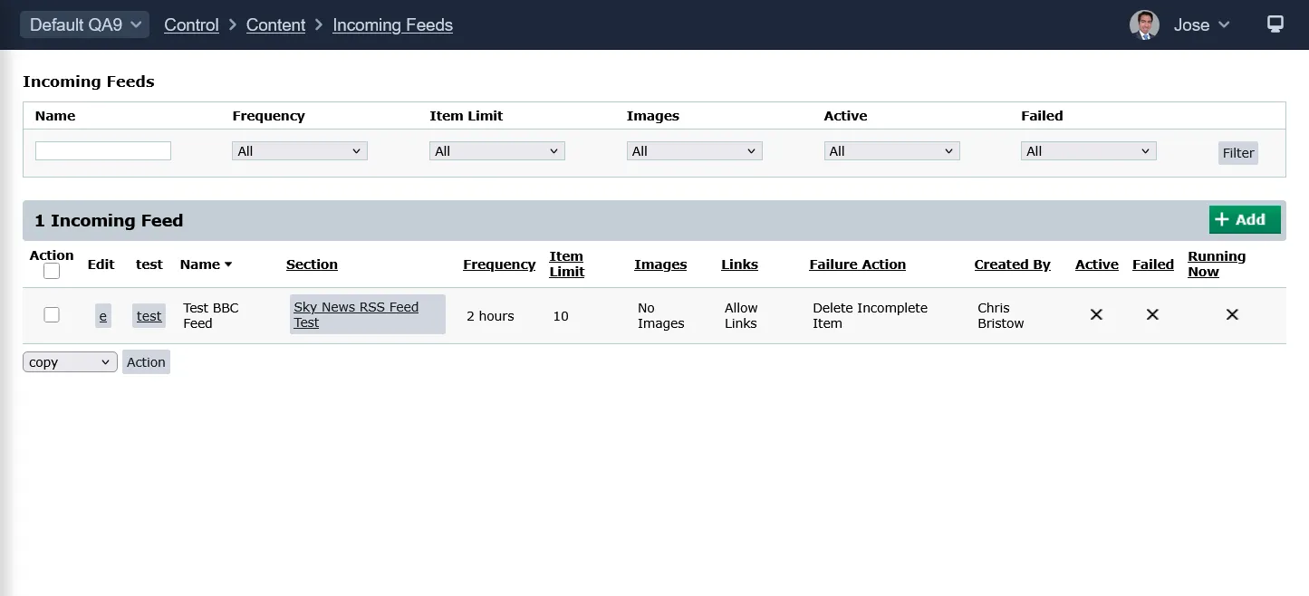 Control > Content > Incoming Feeds