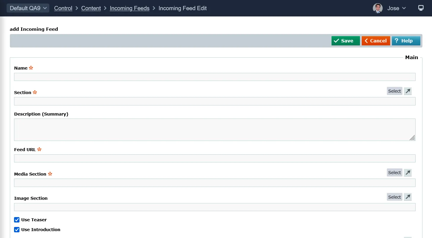 Control > Content > Incoming Feeds > Incoming Feed Edit