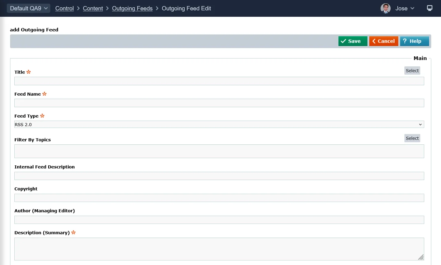 Control > Content > Outgoing Feeds > Outgoing Feed Edit