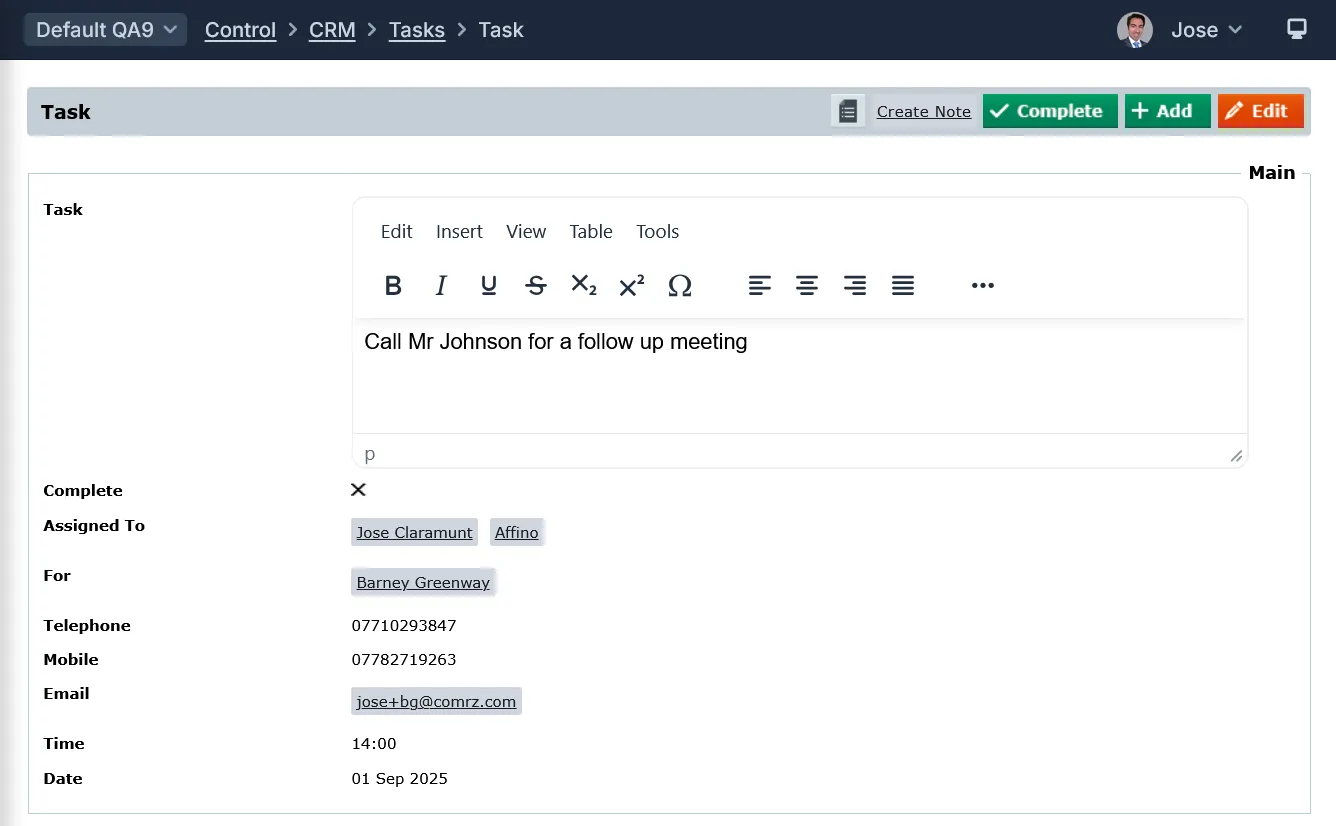 Affino’s Tasks functionality is a comprehensive and evolving feature within the CRM and broader platform, designed to support efficient task management, collaboration, and integration with other business processes.