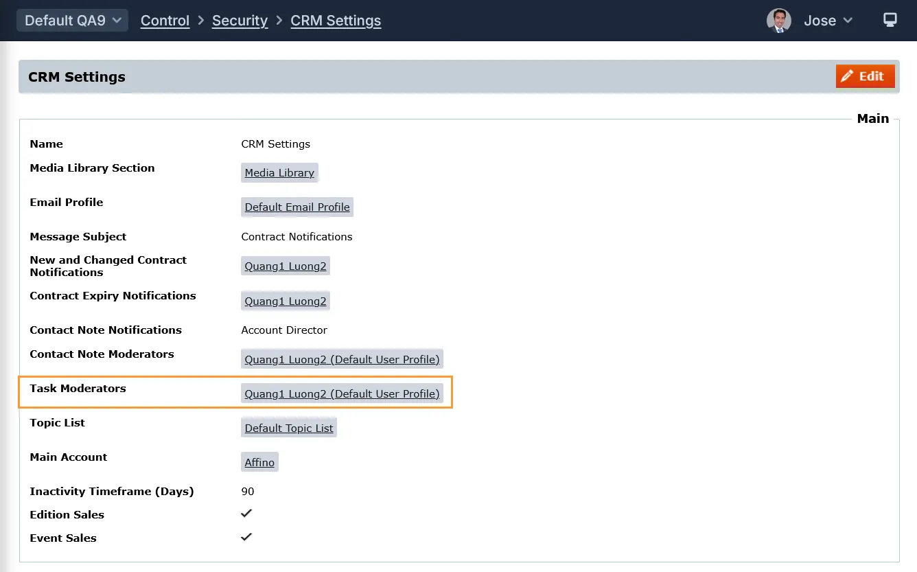 Also, Task Moderators, which are set on the CRM Settings screen, are notified of all Tasks (Task Moderators will always receive a notification).