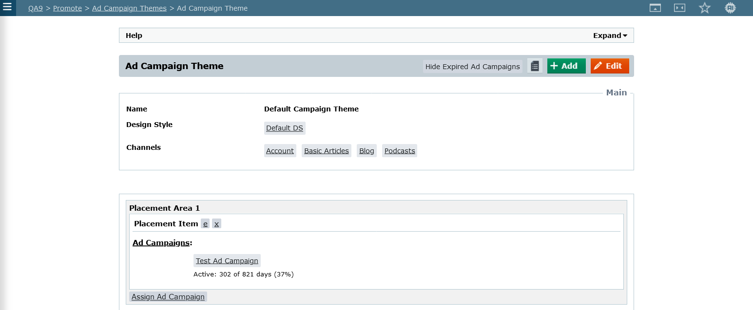 When you associate an Ad Campaign Theme to a Channel, it ensures that the Ad Campaign creatives will be displayed on that Channel.