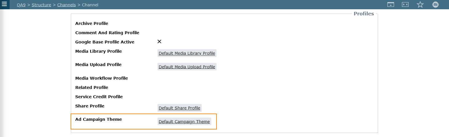 Structure > Channels > Channel Edit > Profiles > Ad Camapaign Theme