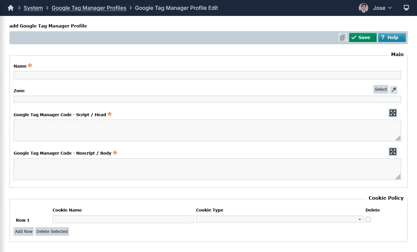 Note: you cannot add multiple Google Tag Manager Profiles to a Zone. Only one.