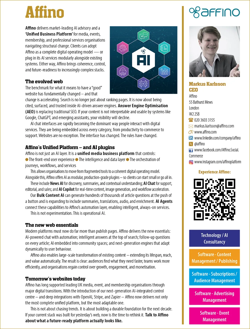 Affino delivers market-leading AI advisory and a ‘Unified Business Platform’ for media, events, membership, and professional services organisations navigating structural change.